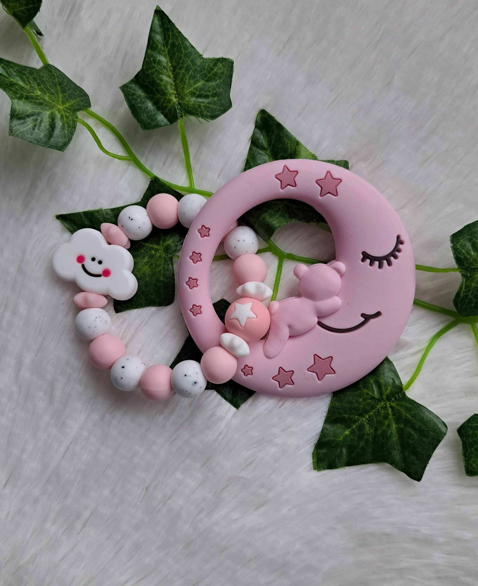 Diese Greiflinge/Beissringe bestehen zum Teil  aus 12 und 15mm Perlen oder mit Holzperlen gemischt.
